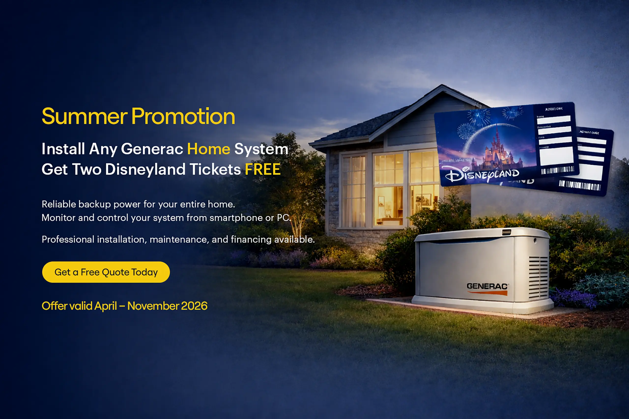 Install a Generac backup generator for hassle-free power solutions, monitored via smartphone or PC.